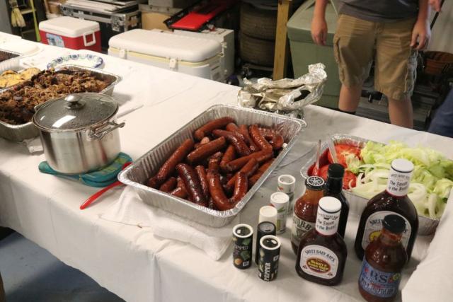 At this point the gang was turned loose on a fantastic meal of Ribs, pulled pork, hot brats, burgers and a great assortment of side dishes and deserts provided by guests. There were roughly 60 hams in attendance and a number of wives and children. Oh yeah, can't forget K9DOG Steve's new Labradoodle "Lucy"!